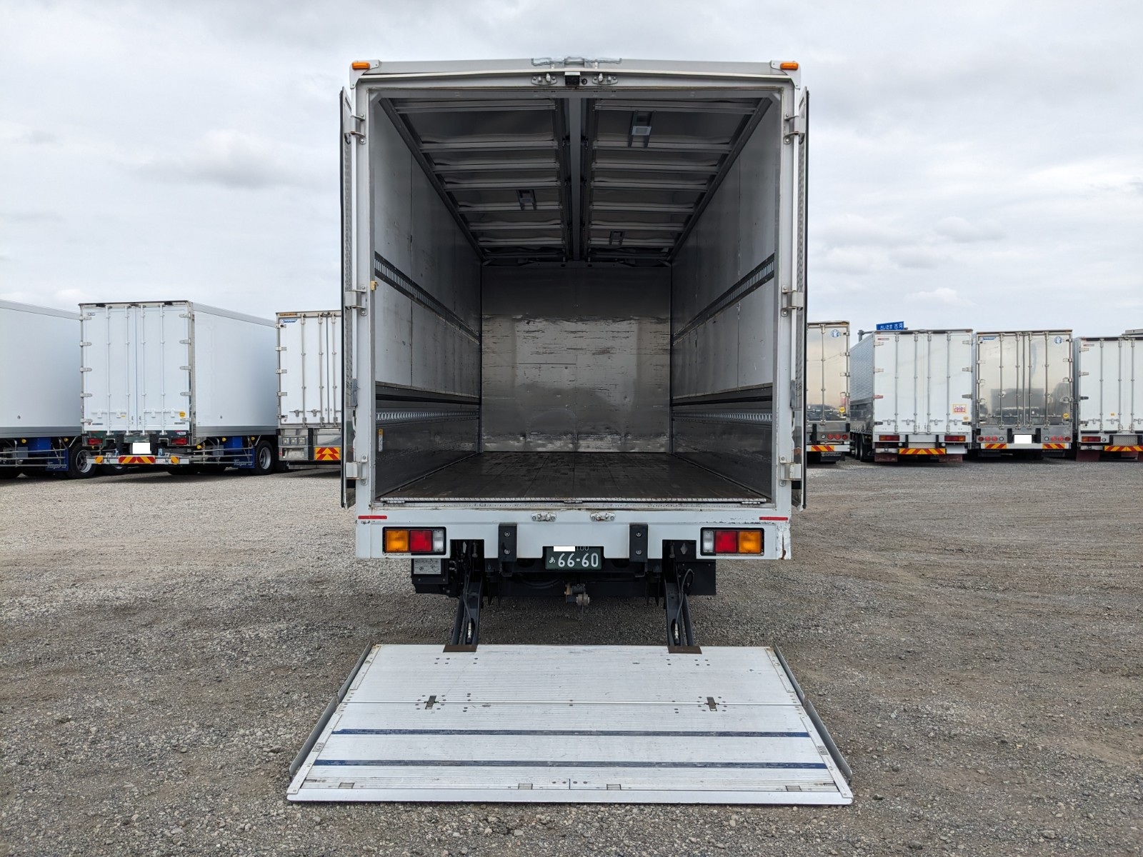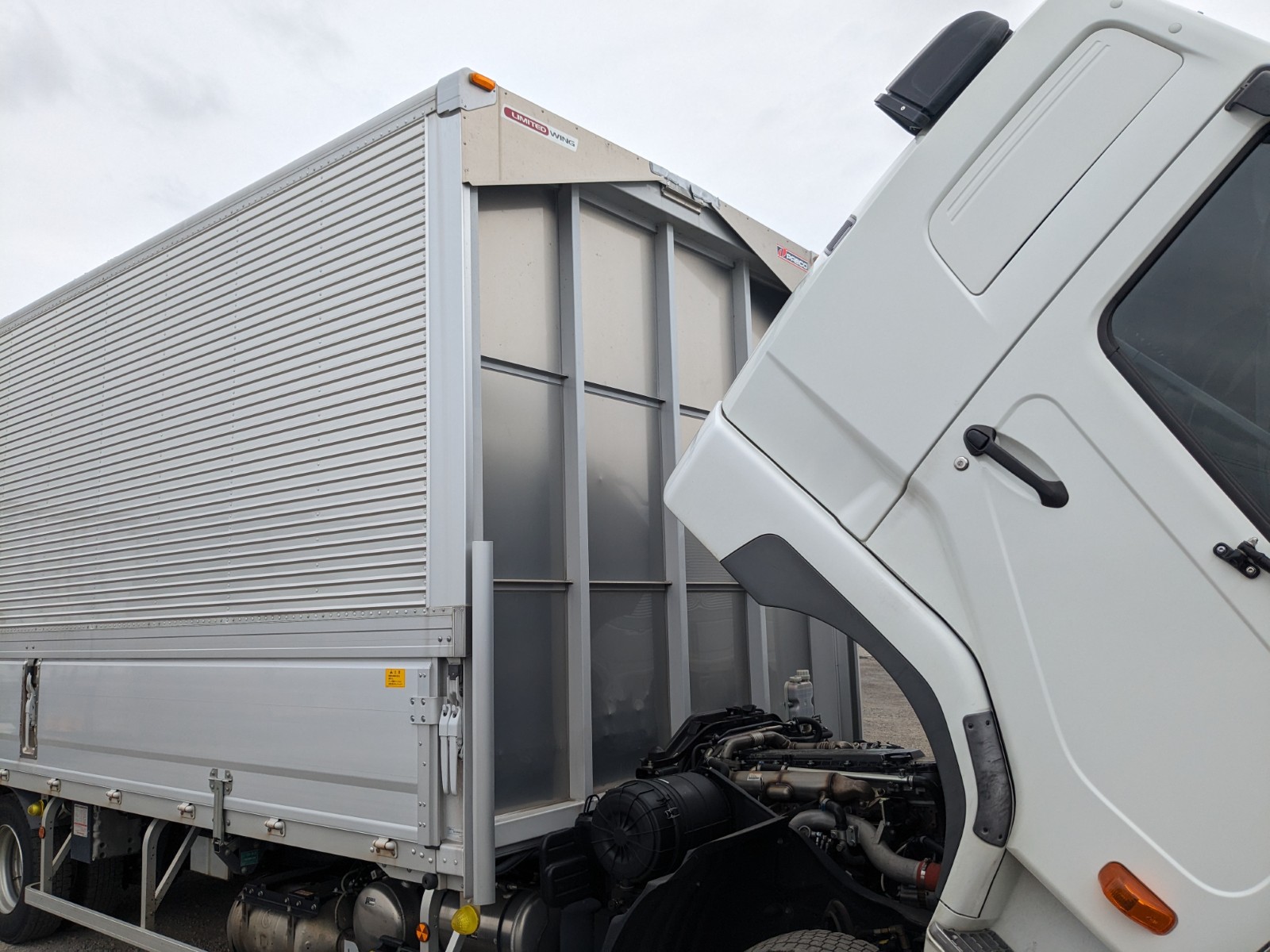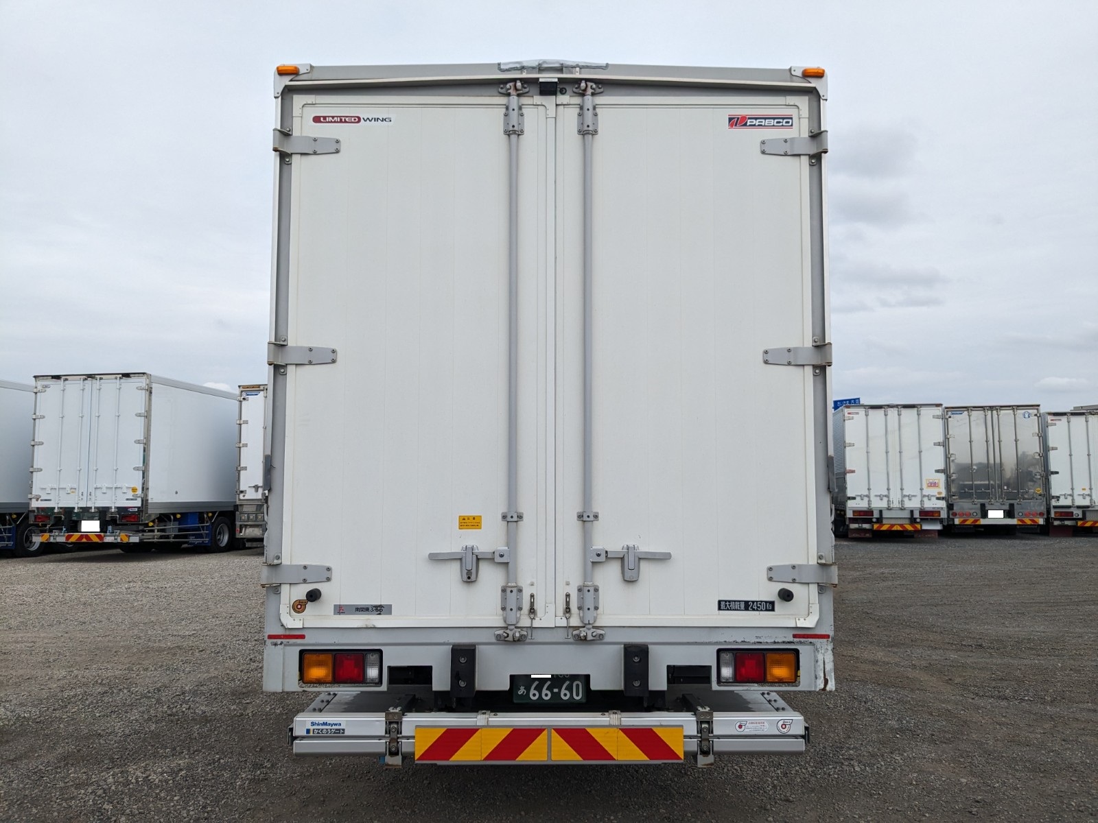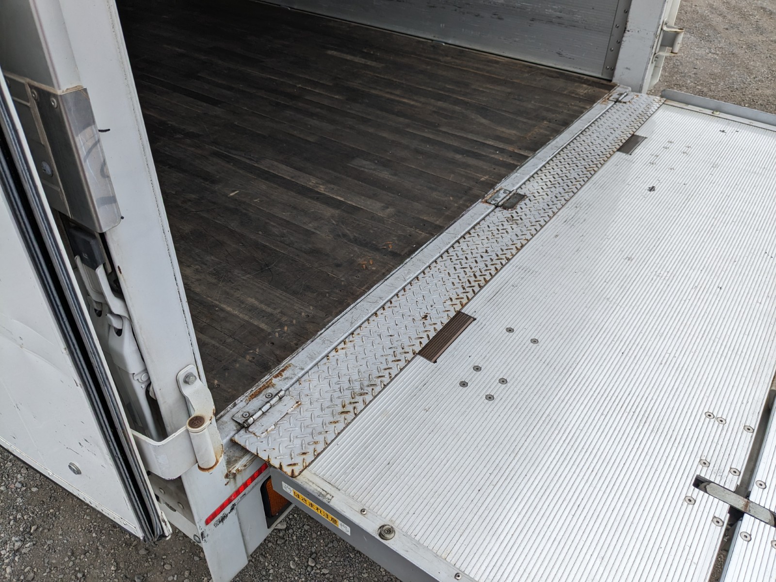 【備考】引出しフック5対。ラッシングレール2段。庫内灯3。左ウイングコルゲートパネル凹み穴あき補修有。床板削れ。